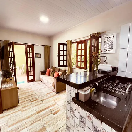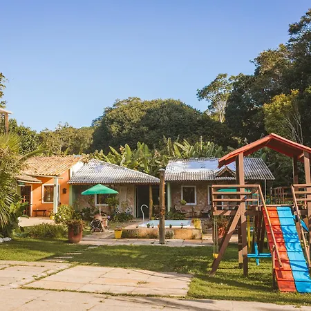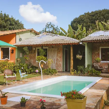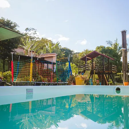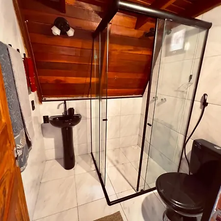 Von den Fenstern der Villa aus können Gäste einen Blick auf den Pool genießen. Die Estancia Dos Passaros verfügt über ein Badezimmer mit einer Dusche.
